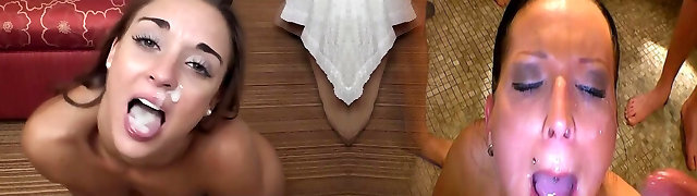 Charming cuties getting their daily dose of facial in cum shot comp