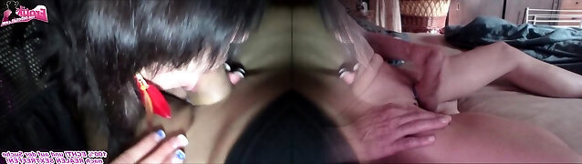 POV Blowjob by a puny asian girl milking her bf with her mouth