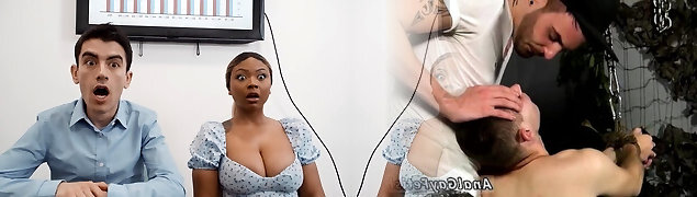 Interracial porking in the office with naughty Avery and Zoe