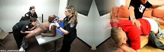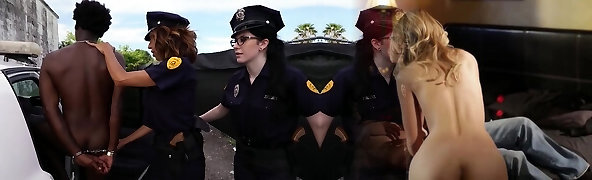 Sex-hungry police women fuck one arrested big black fellow