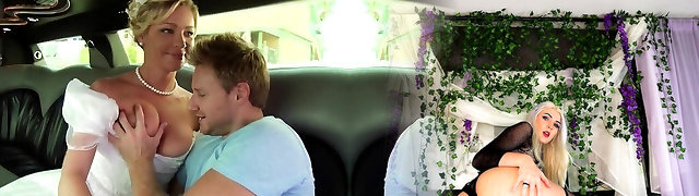 Horny bride penetrating with her handsome groom in a limo