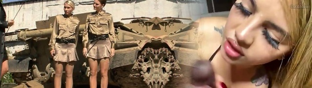 Military damsels have a threesome with their commanding officer