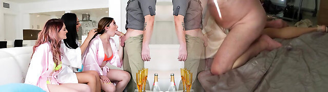 Bride and bridesmaids took turns bouncing there twats
