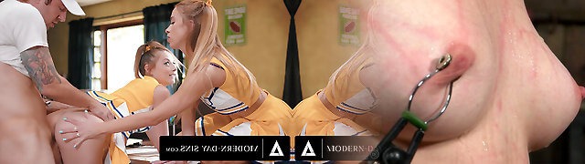 MODERN-DAY SINS - Ultra-kinky Small CHEERLEADERS Compete For Pervy Coach's Cock In DEEP ANAL THREESOME!