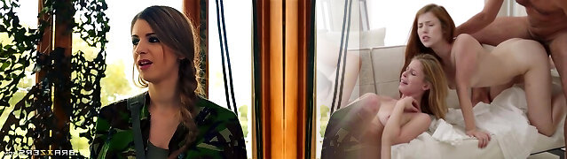 Innocent stunner double penetrated by soldiers