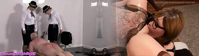 Police femdoms spanks subs booty with different objects
