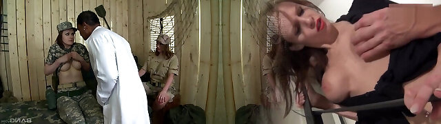 Soldier Tina Kay in an multiracial group sex with a black doctor