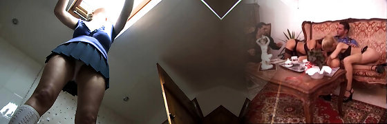 College Girls with uniform upskirt voyeur