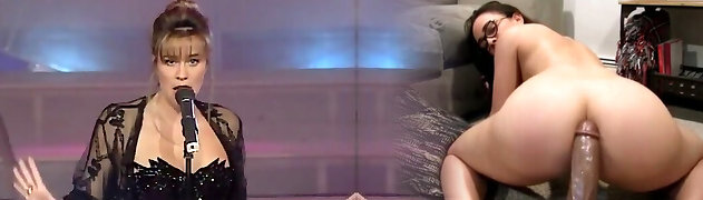 Sexy platinum-blonde on black heels nails her twat with a fuck stick
