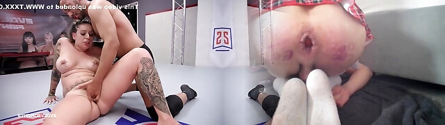 Horny Stunners Fuck With A Strapon In The Middle Of The Ring