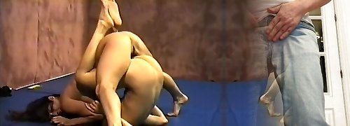 Wrestling Asian dyke wins chubby loser with big ass