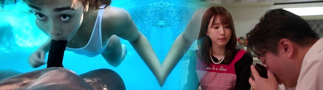 Cuddly Japanese cutie wets her round perky bootie in pool