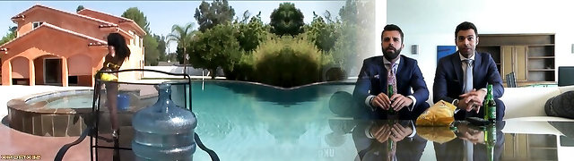Outdoor lesbian three-way by the pool - Aidra Fox and Adria Rae