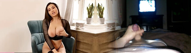 Big breasted auburn sexpot watches the way hubby romps sexy call girl
