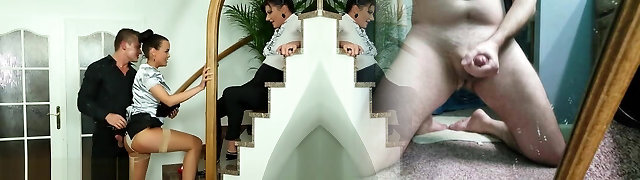 Thirsting hubby licks sweet pussy of his lengthy legged tramp Allie James on kitchen table
