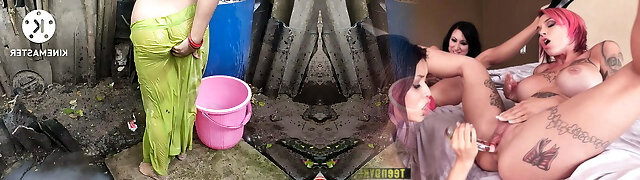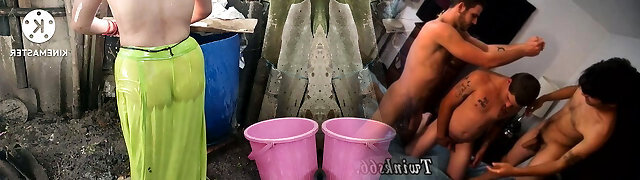 Desi was pissing in village douche and got finger fucked too (roboplx and robopl)