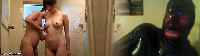 Japanese slutty housewife Asuka Kyono strokes cock in the shower