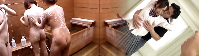 Cute Oriental ultra-cutie took baths with mate UNSENSORED