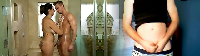 Nerdy Dude Looses His Virginity With His Slutty Curvy Busty Light-haired Stepmom In the Bathroom