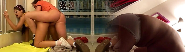 Teen stunners in socks Tiffany Tatum and Lady Bug share a trouser snake