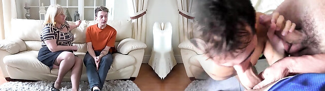 Plus-size mom seduces her son's best friend and blows and nails him