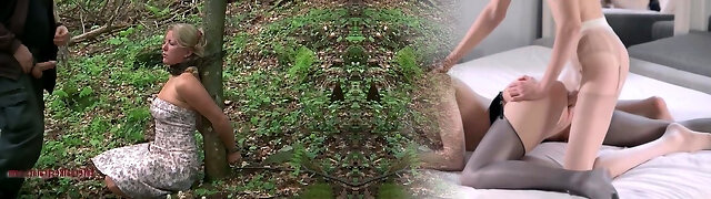 Sensual nlonde mummy Dia Zerva gets bounded to the tree in woods