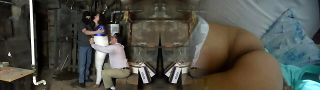 Slutty nun gets tied up and fucked rough by 2 boys