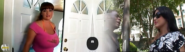 To seduce her neighbor naughty MILFie fatty flashes her giant saggers