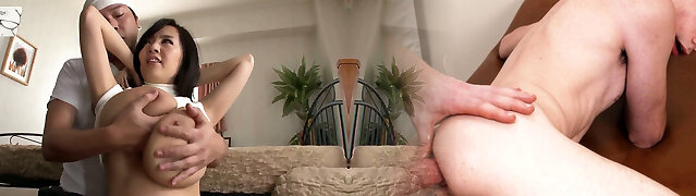 This chesty Japanese chick is hot and I'd love to see her toying with my cock
