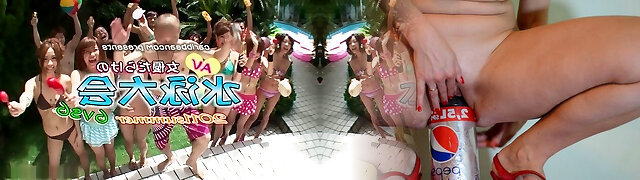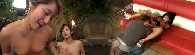 Lucky stud fucks 2 stunning Japanese girls in a public pool