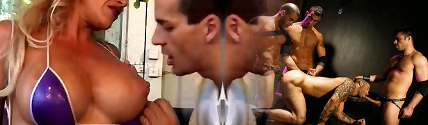 Man slurping bitch Pristine Brim gives a titjob and gets her ass hole rammed
