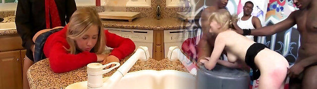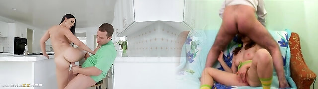Buxom fit babe Rachel Starr doggy pounded in the kitchen
