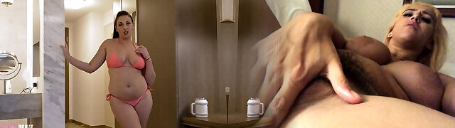 Busty babe Kylie Shay in a bikini came to the rescue of a hefty manhood man in the douche