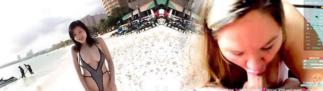 Amazing Threesome at the Beach with Two Spectacular Asian AV Models