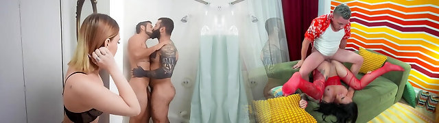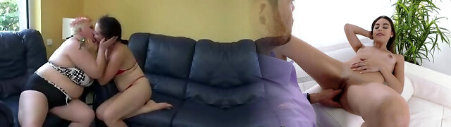 Group bisexual fuck with BBC, curvy bitch and skinny teenie