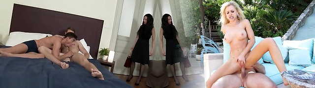 Sexy brunette luvs a 3 way with her bisexual boyfriend and stepbrother.