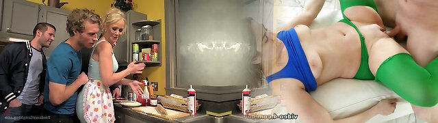 Coddled stepson and his cocky mates fuck big tittied stepmom Simone Sonay