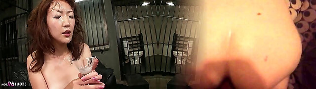 Dirty asian bitch trapped in a box hard-core bukkaked