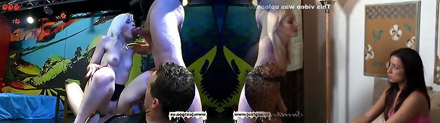 Horny men treat a beautiful blonde sex bomb to a 4some