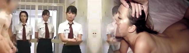 CFNM Japanese inmates line up for daily manstick inspection and handjob