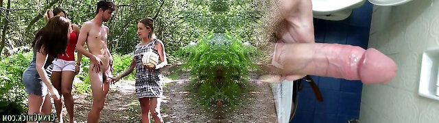 Stunning CFNM babes tugging lucky DILF