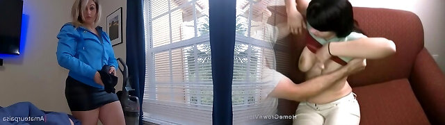 Plump prodomme strapon banging her sub