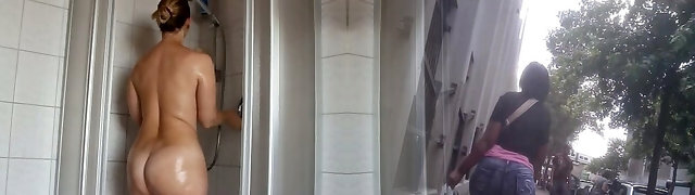 Homemade solo with my big-assed wifey taking a shower