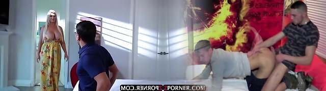 Lush Blonde Woman With Immense Boobs Is Moaning While Having A Casual Threesome With Two Guys