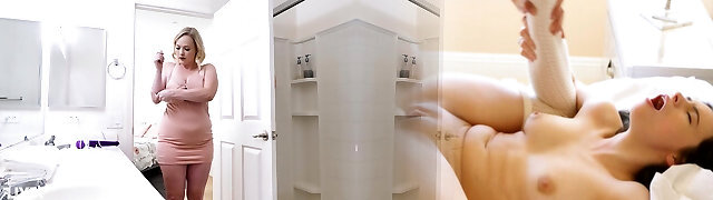 Chubby stepmom with a vibrator occupied the bathroom for a lengthy time