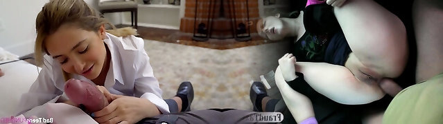 Adorable shy student Renata Fox is face fucked by fuck-fest-starved young teacher
