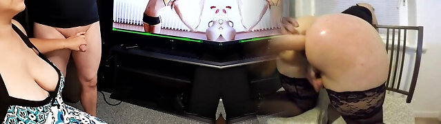 Mature stepmom jerks off my dick while watching erotic series.