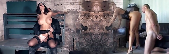 Watch these two mature housewives take on this young twink