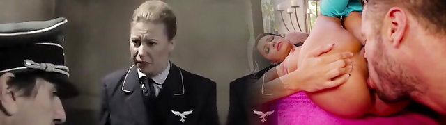 Military man puts a cougar in a gag and cuffs and bangs her