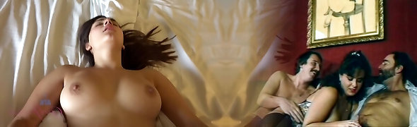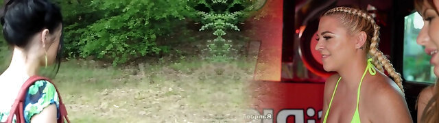 Italian seductress Martina Smeraldi and her girlfriend are humped by a crowd of nasty men